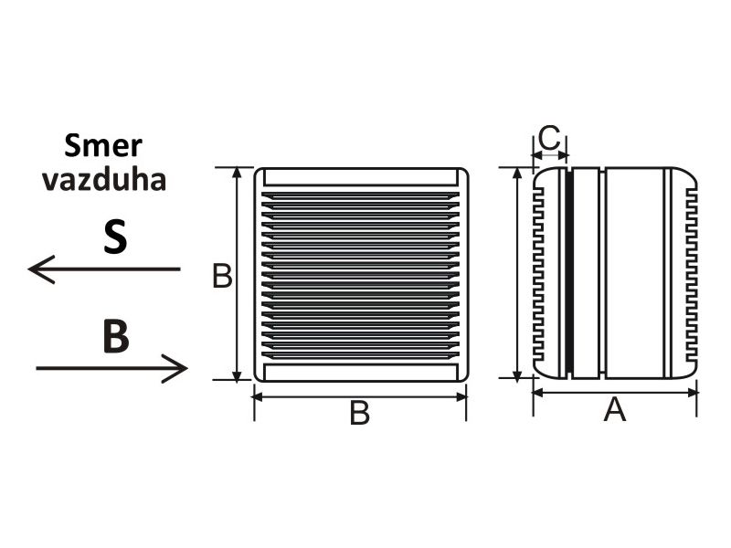 Protok vazduha: B-825 m^3/h; S-530 m^3/h
