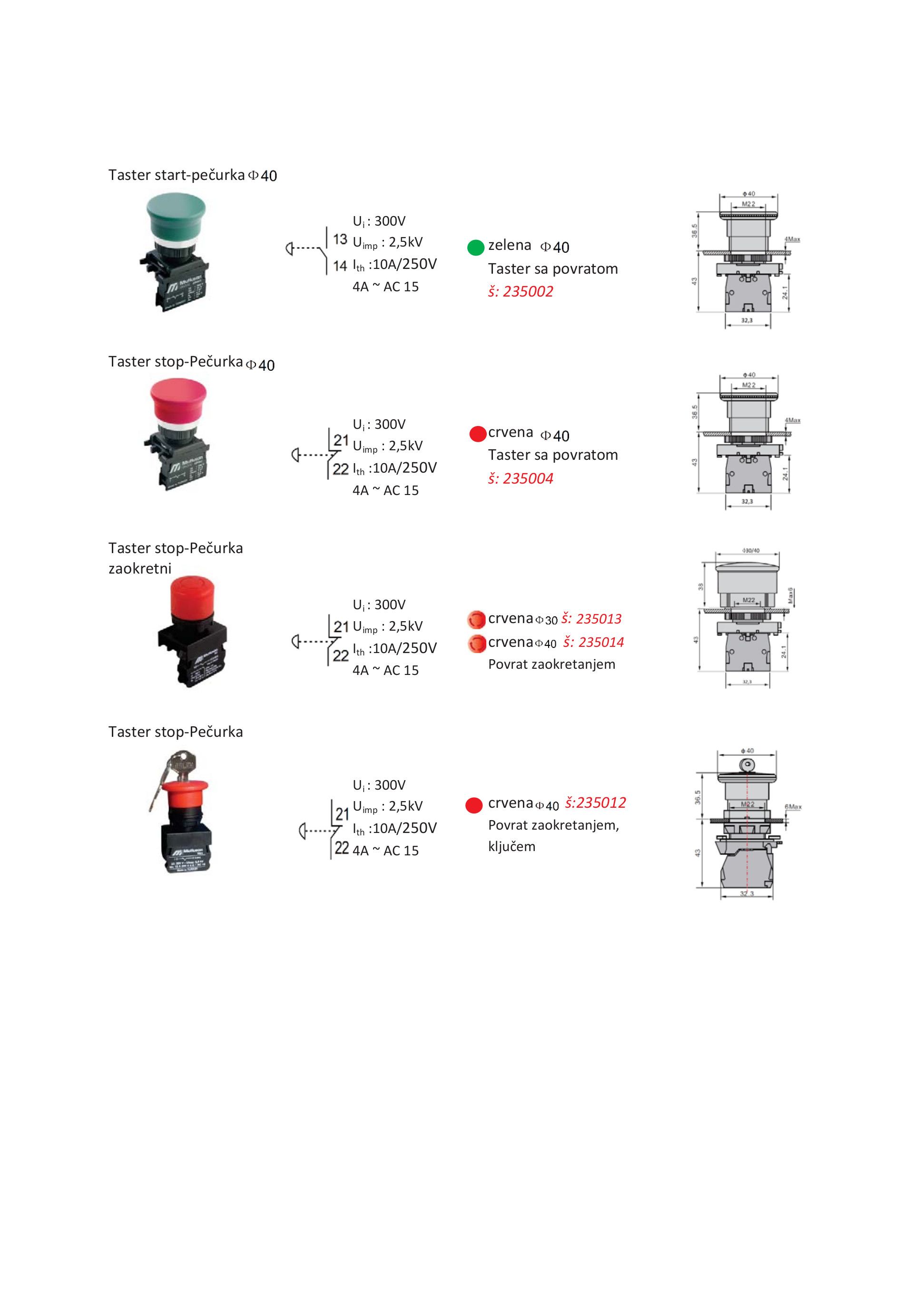 Namena: Uredjaji koji se koriste za upravljanje komandnim tablama i pultovima u industrijiskim sistemima za automatizaciju. Proizvedeni su da komutiraju upravljacka kola i upravljaju ukljucivanjem ili iskljucivanjem izvršnih mehanizama kao što su releji,kontaktori i dr. Veza se ostvaruje pomocu navojnih klema, na koje mogu da se povežu kablovi preseka do 2,5mm^2.
